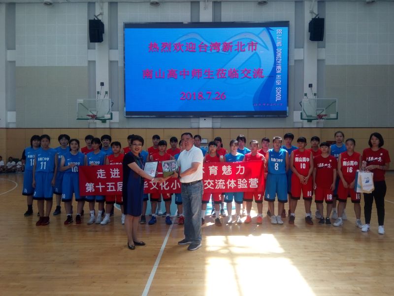 7月26日上午,“走進北京 感受體育魅力”第十五屆中華文化小天使交流體驗營的臺灣新北南山高中女籃來到東城區東直門中學與同齡人競技。比賽激烈,精彩紛呈,兩岸青少年以球會友,交流情感。臺灣新北南山高中女籃去年獲得臺灣高中女籃冠軍,實力不俗,最終以49比45獲勝。