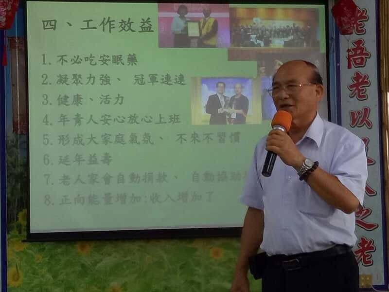 首先竹森社區理事長介紹了社區日間托老情況。竹森社區共有145名老人,其中最大的年齡93歲,平均年齡85歲。每周五天都會有45名老人會來社區參加活動,活動期間由志工負責接送和照顧。老人們主要在社區進行唱歌、做環保手工等活動。