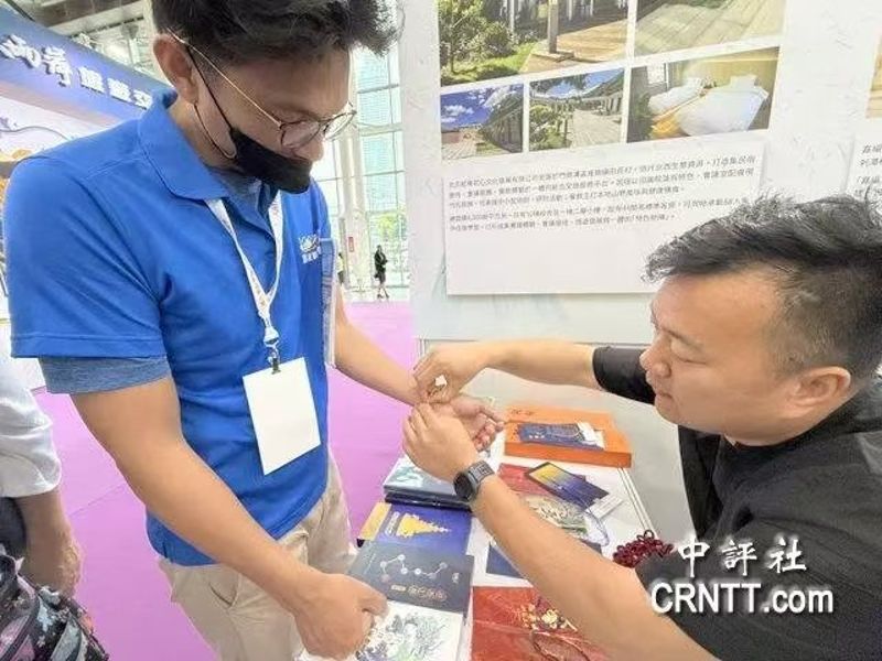 近日,北京門頭溝區旅游行業協會受邀赴臺灣參加“2025高雄市旅行公會國際旅展”。除推介門頭溝區風景、文創外,“結繩技藝”非遺傳承人陳信也到場交流,分享如何將古法編織工藝做創新,“結”如何成為文化載體,編出代表健康的藥師結、追求好運的桃花繩以及端午應景的平安繩等,受到來參展的年輕朋友的喜愛。