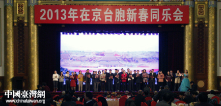 ??? 臺盟中央、全國臺聯(lián)今(25)日在京共同舉辦2013年在京臺胞新春同樂會。在京定居的臺胞代表、在京投資經(jīng)商的臺灣企業(yè)界人士、在京求學的臺灣學生與首都各界300余人歡聚一堂,共敘親情、友情,喜迎新春佳節(jié)。(中國臺灣網(wǎng)?王怡然?攝)