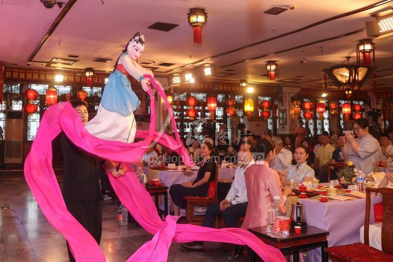 2023年9月6日, 演員在北京舉辦的“茶之緣”兩岸茶人品茗會上表演木偶戲。