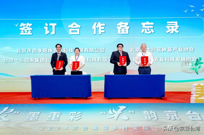 活動(dòng)現(xiàn)場(chǎng),大興區(qū)種苗產(chǎn)業(yè)協(xié)會(huì)與高雄市智慧農(nóng)業(yè)科技發(fā)展協(xié)會(huì)簽訂種苗育苗技術(shù)及科技農(nóng)業(yè)發(fā)展備忘錄,臺(tái)灣一心回鄉(xiāng)農(nóng)業(yè)科技集團(tuán)與北京四季陽(yáng)坤農(nóng)業(yè)發(fā)展有限公司簽訂2024種苗培育合作協(xié)議及未來(lái)五年戰(zhàn)略合作伙伴協(xié)議書,這兩項(xiàng)合作的達(dá)成充分體現(xiàn)了兩岸農(nóng)業(yè)方面交流的成果,更進(jìn)一步促進(jìn)了兩岸農(nóng)業(yè)科技的交流合作。臺(tái)灣相關(guān)單位參與并共同發(fā)起的北京市大興區(qū)種苗協(xié)會(huì)成立啟動(dòng)儀式將開(kāi)幕式推向高潮,隨著兩岸農(nóng)業(yè)領(lǐng)域?qū)<覍W(xué)者印上手印,北京市大興區(qū)種苗協(xié)會(huì)正式宣布成立。主論壇環(huán)節(jié),來(lái)自京臺(tái)兩地的嘉賓圍繞智慧農(nóng)業(yè)科技、鄉(xiāng)村振興、種苗產(chǎn)業(yè)等主題開(kāi)展主旨發(fā)言。“青”創(chuàng)沙龍環(huán)節(jié),臺(tái)灣創(chuàng)生優(yōu)秀案例負(fù)責(zé)人生動(dòng)介紹了經(jīng)驗(yàn)成果,現(xiàn)場(chǎng)嘉賓頻頻交流互動(dòng),兩岸青年紛紛表示收獲頗豐。
