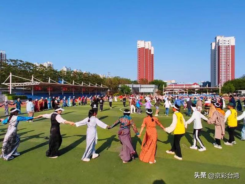 4月24日,“同根相融 攜手前行”京臺傳統(tǒng)體育項目交流活動在石景山區(qū)黃莊職業(yè)高中舉辦。在石景山區(qū)參訪的臺灣基層交流團(tuán)團(tuán)員、黃莊職業(yè)高中拉薩班同學(xué)、青年代表共計100余人參加活動。