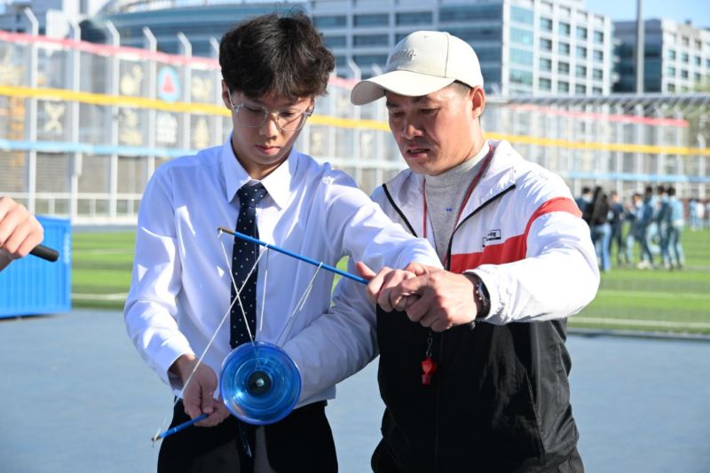 “北京同學(xué)和我們一樣,特別活潑,相處起來很自然。”臺灣高中生李阿德一邊調(diào)整空竹的平衡,一邊分享感受。在操場上,他隨著老師“右手往上提,左手往下跟”的指導(dǎo)抖動空竹,逐漸掌握節(jié)奏。李阿德告訴記者,在臺灣,抖空竹稱作“扯鈴”,他小時候接觸過,這次來到北京西城又學(xué)到一些新技巧。談到對北京八中的印象,他表示,第一眼就看到了校園里的孔子雕像,濃厚的文化氛圍讓人肅然起敬。