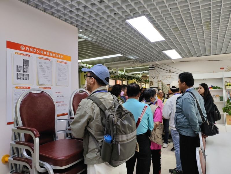 在月壇街道三里河二區社區,參訪團成員參觀了養老驛站、小月亮托育中心等項目建設、運營情況,仔細聆聽社區負責人介紹基層群眾自治、居民議事協商、社區環境治理等各項工作成果。